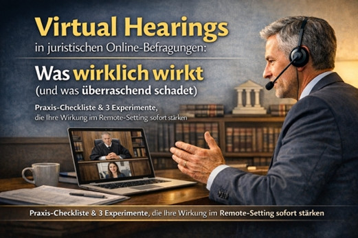 Virtuelle Anhörungen sind kein „normaler Termin mit Kamera". Sie sind ein anderer Interaktionskanal – mit eigenen Wahrnehmungsfehlern, eigenen Statussignalen und eigenen Risiken für Glaubwürdigkeit, Rapport und Kontrolle.
